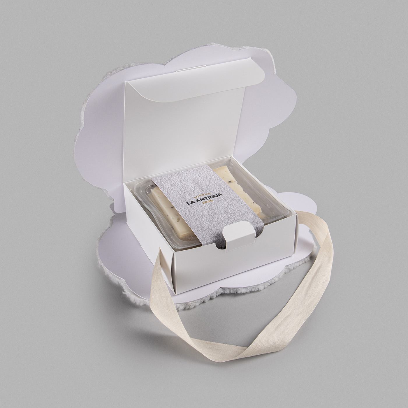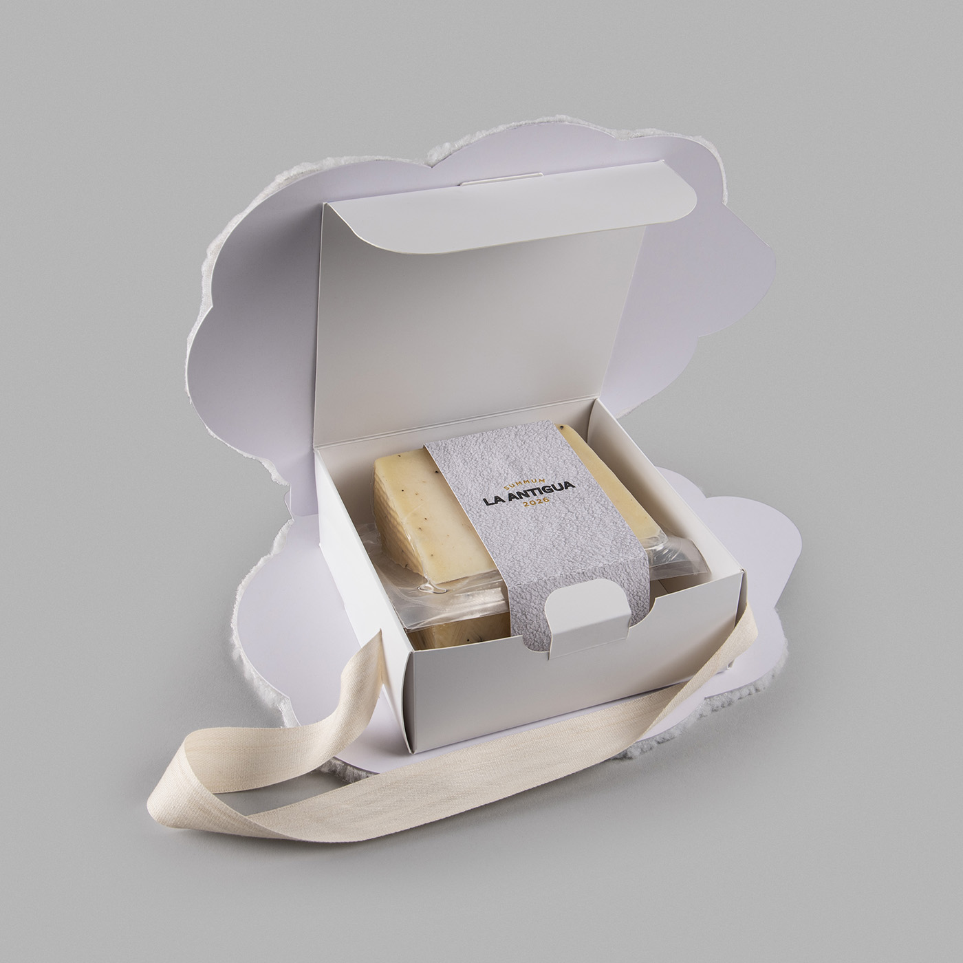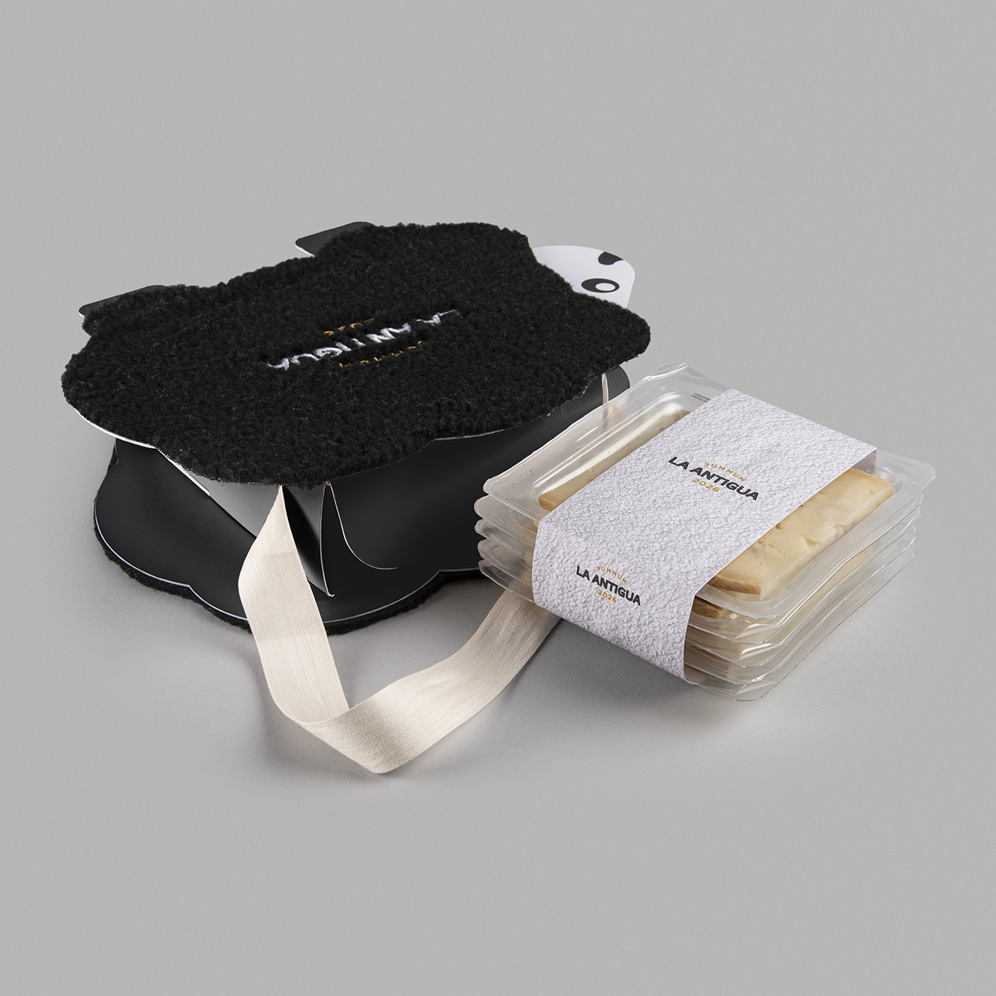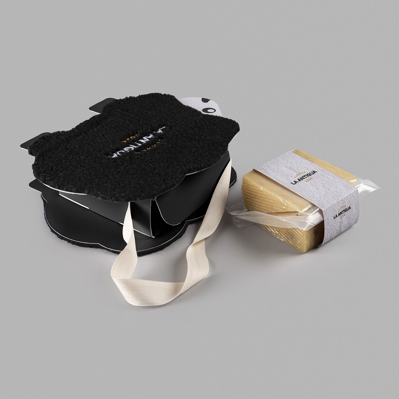 Diseño de packaging para el queso Summum 2026 de Quesería La Antigua que este año es un homenaje a la oveja por ser la productora de la leche con el que se hace este queso excepcional. Creamos unas simpáticas ovejitas que están forradas con tela simulando la piel de la propia oveja con el logo bordado. Estas piezas forman un contenedor que puede llevar tanto cuñas como loncheados y así tener varias opciones. La ovejita también tiene un colgador para poder ser llevado cómodamente. El resultado es una llamativo y simpático packaging que rinde homenaje de una manera original.