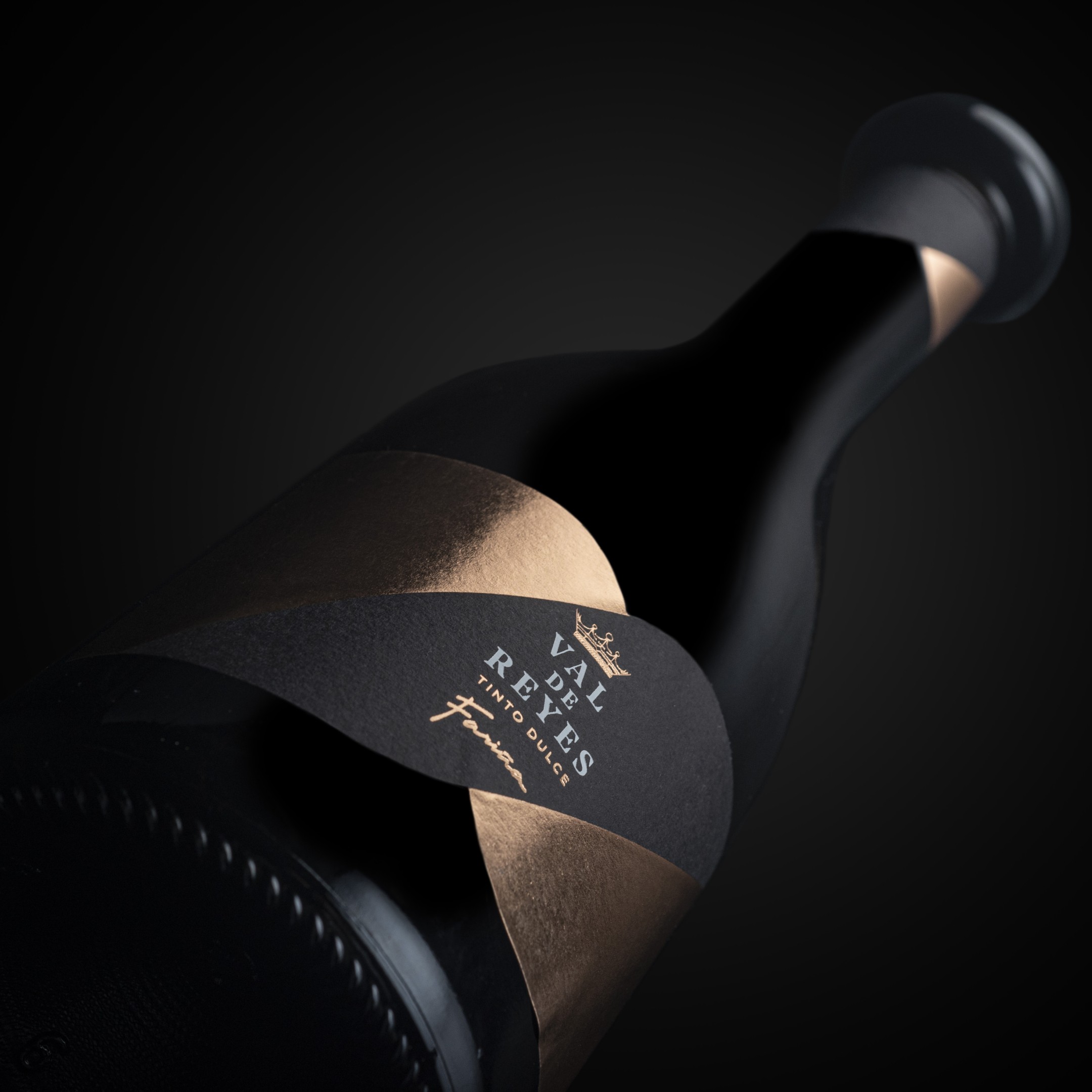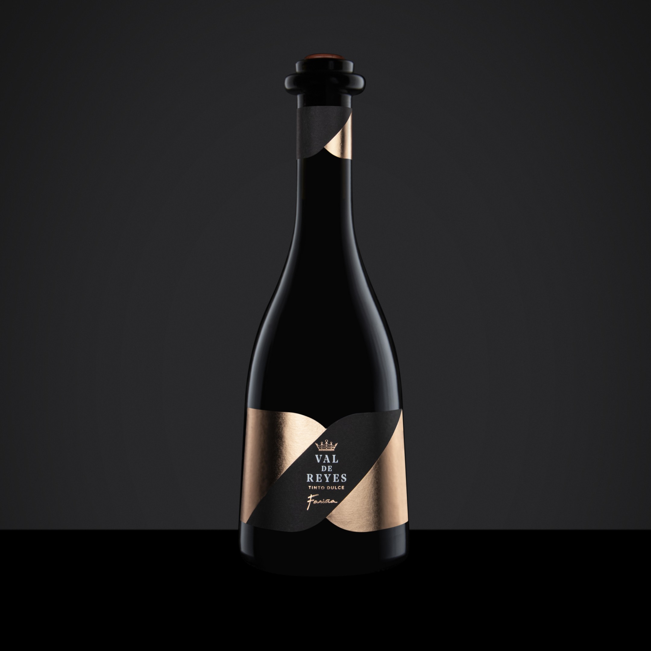 A redesign of an iconic wine from Bodegas Fariña. The challenge of labeling this stylish bottle led us to create a small label with a die-cut that perfectly fit the bottle while also conveying the elegance and charisma of this sweet wine. A bow tie-shaped collar adorns the neck of the bottle to reinforce the overall premium look.